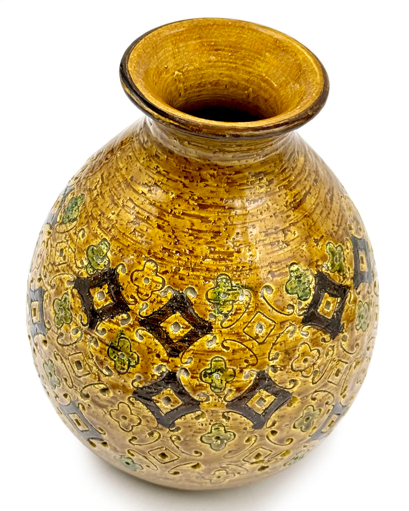Bitossi (Italie) 'Spagnolo' en moutarde/marron, vase 7,5"