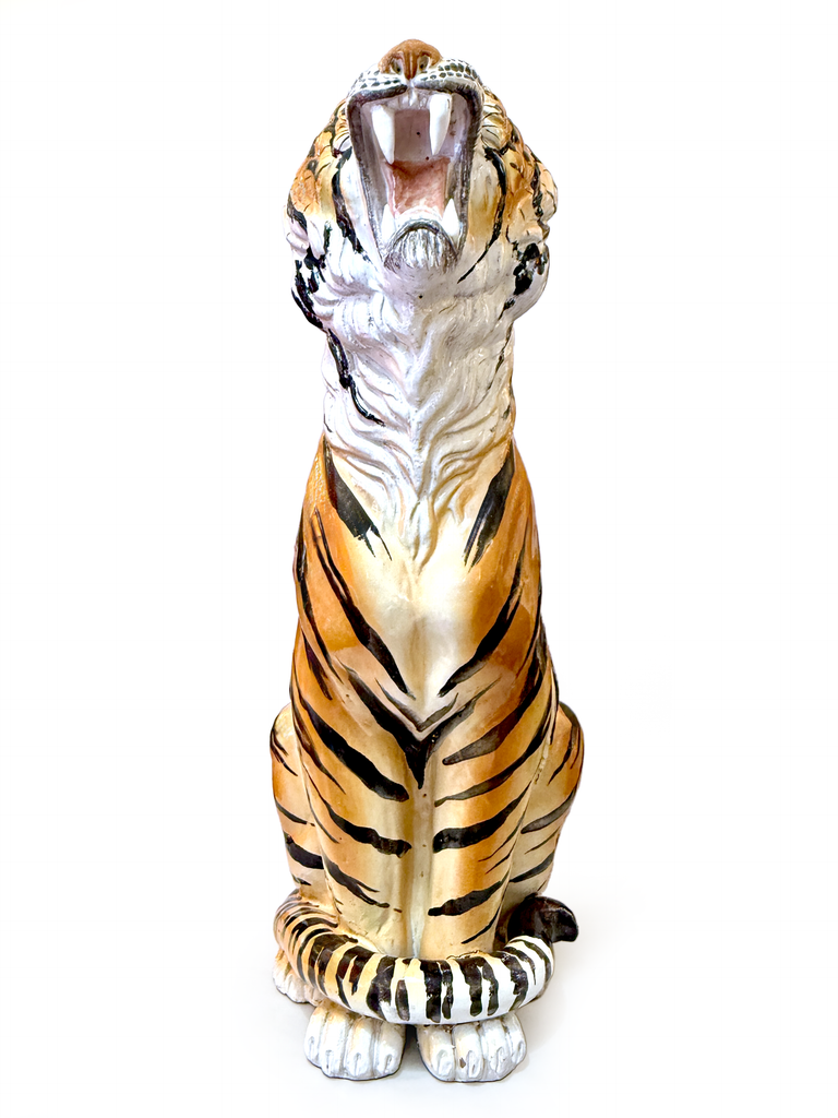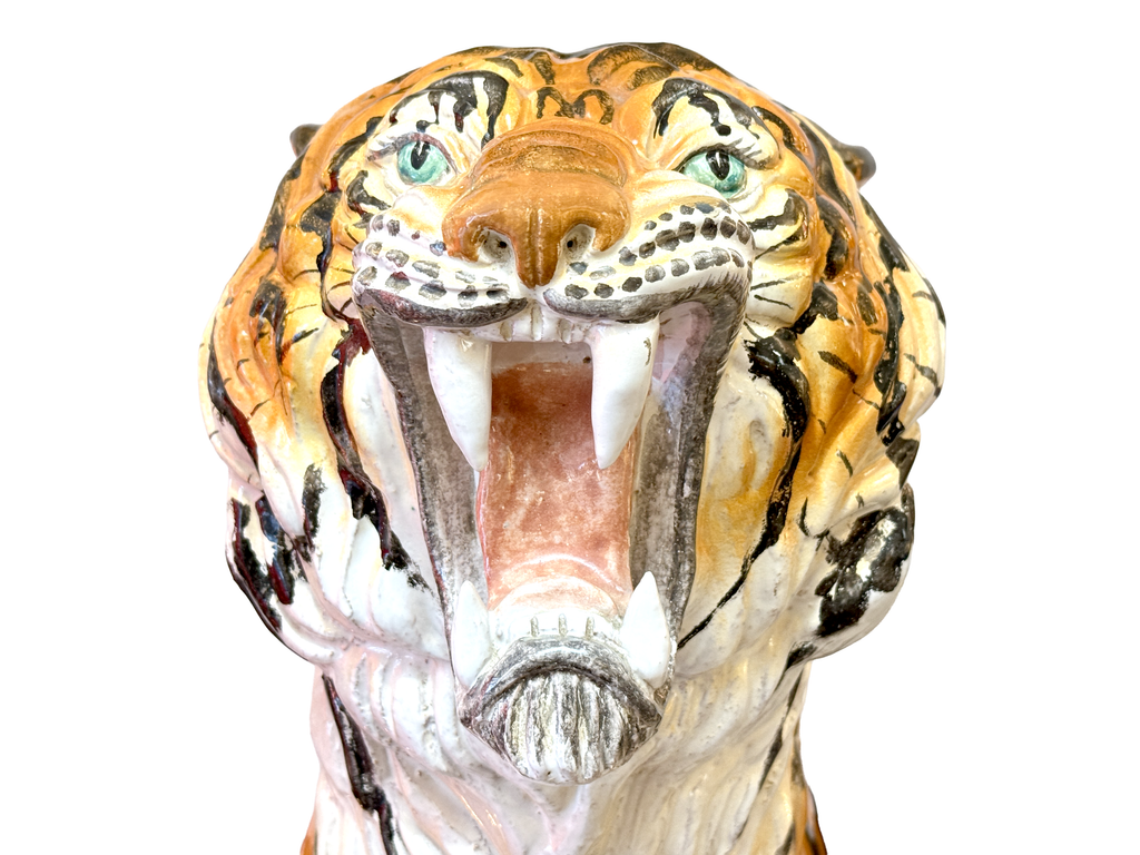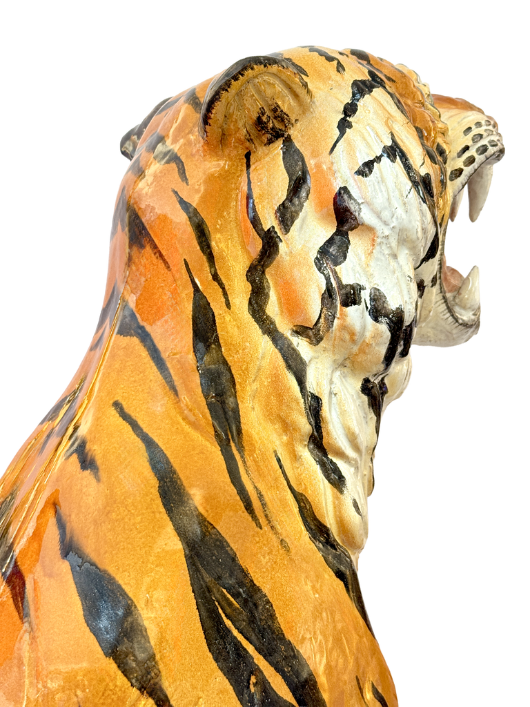 Statue de tigre XXL en céramique italienne de 82,5 cm *DÉCOUVERTE RARE*