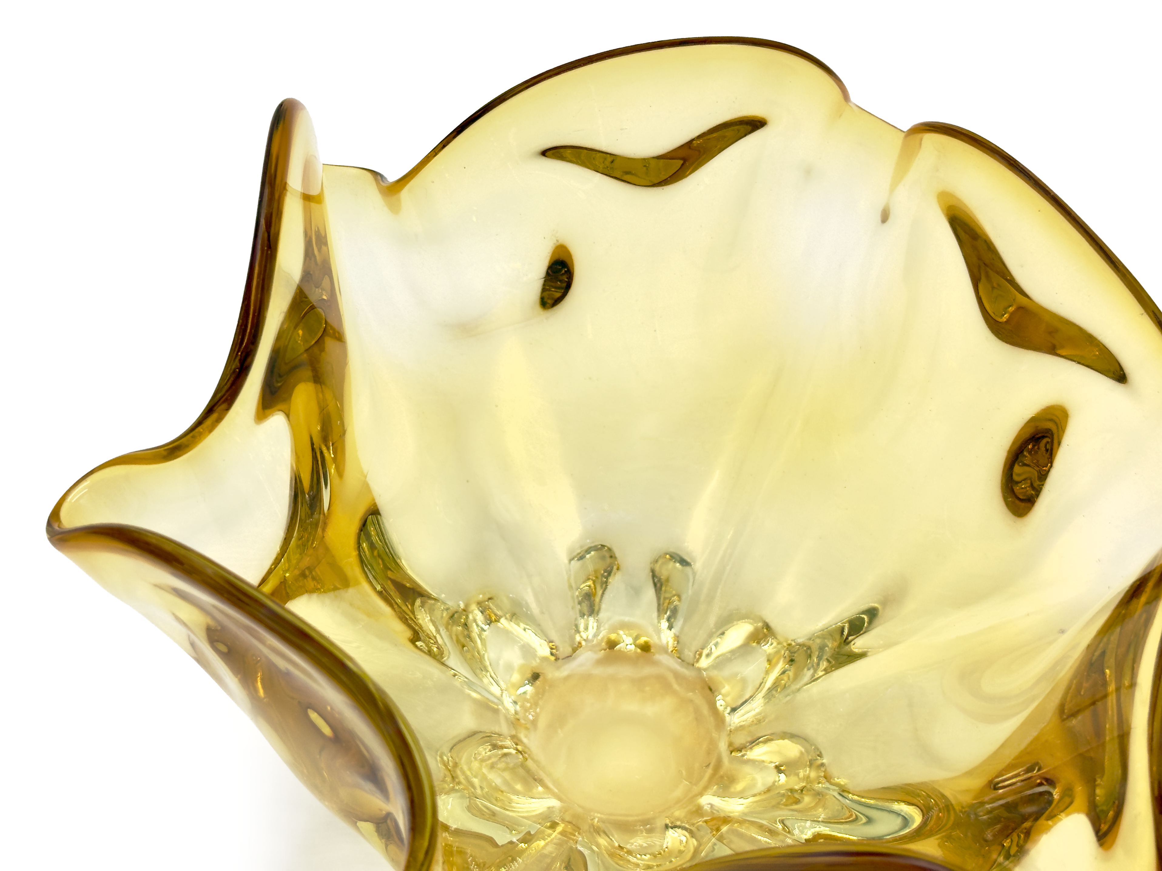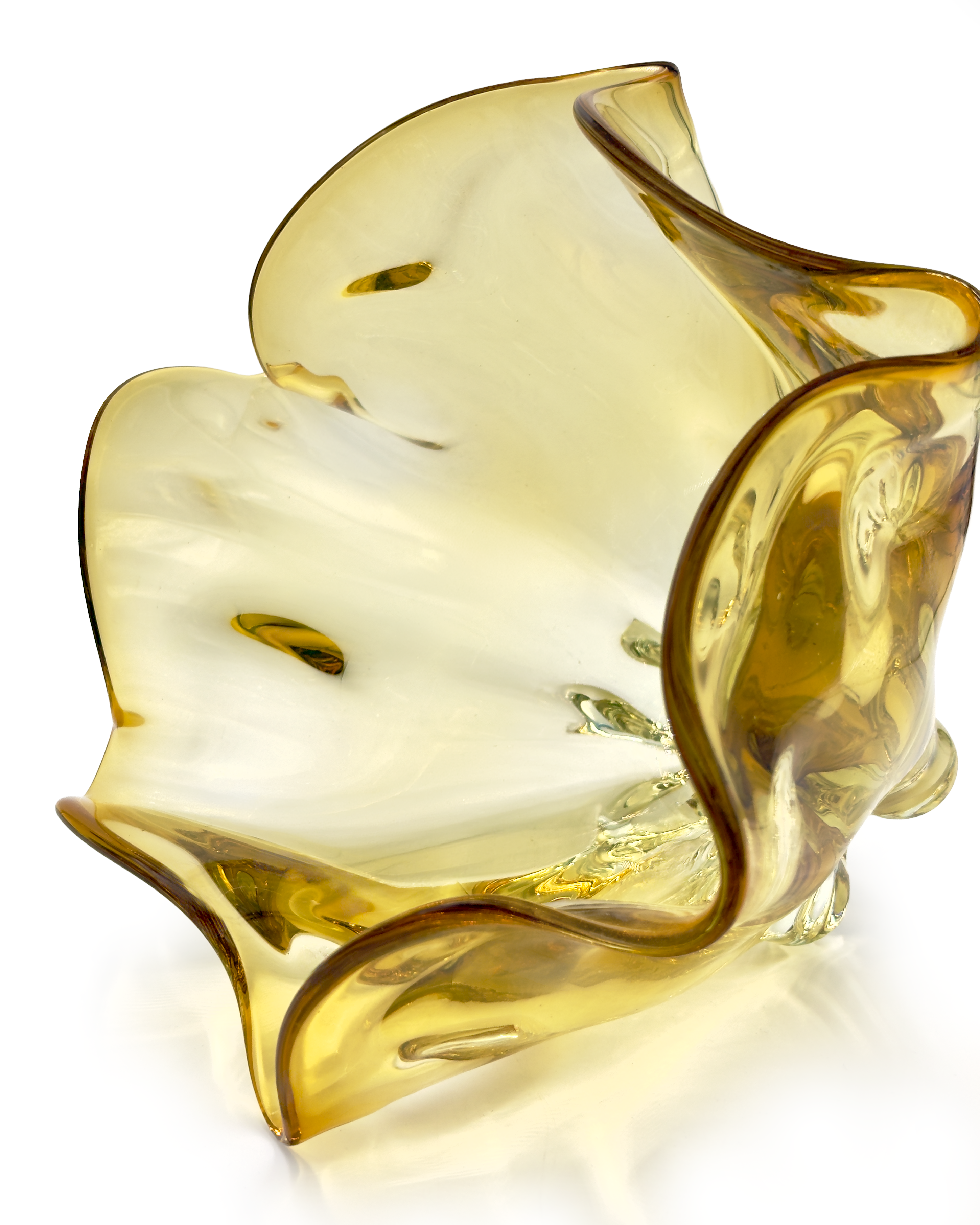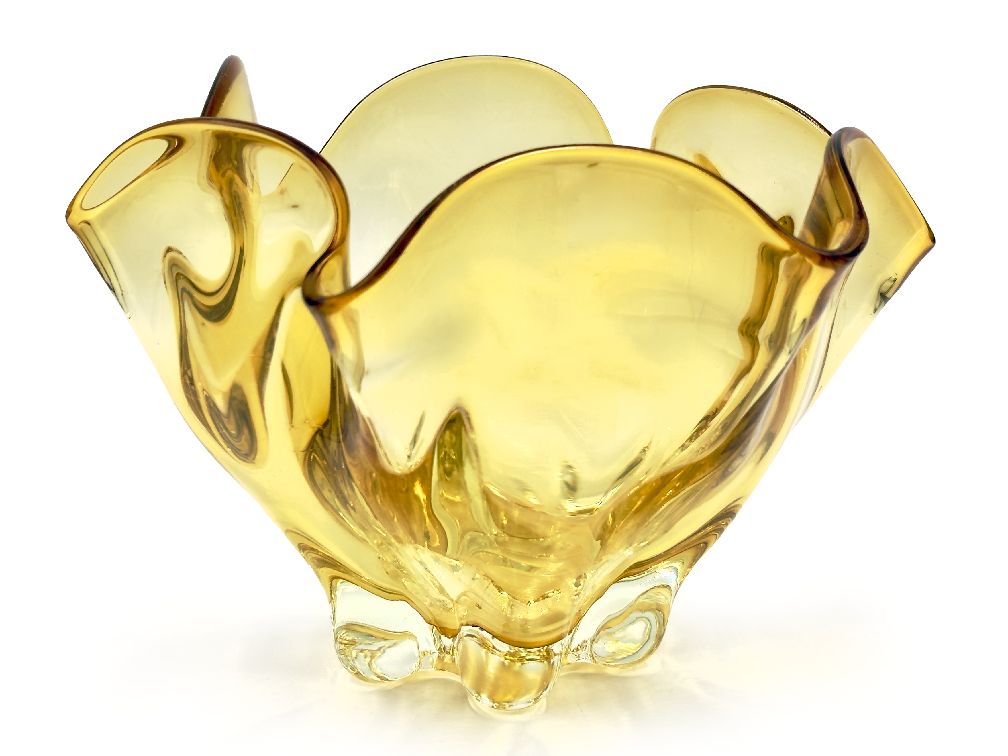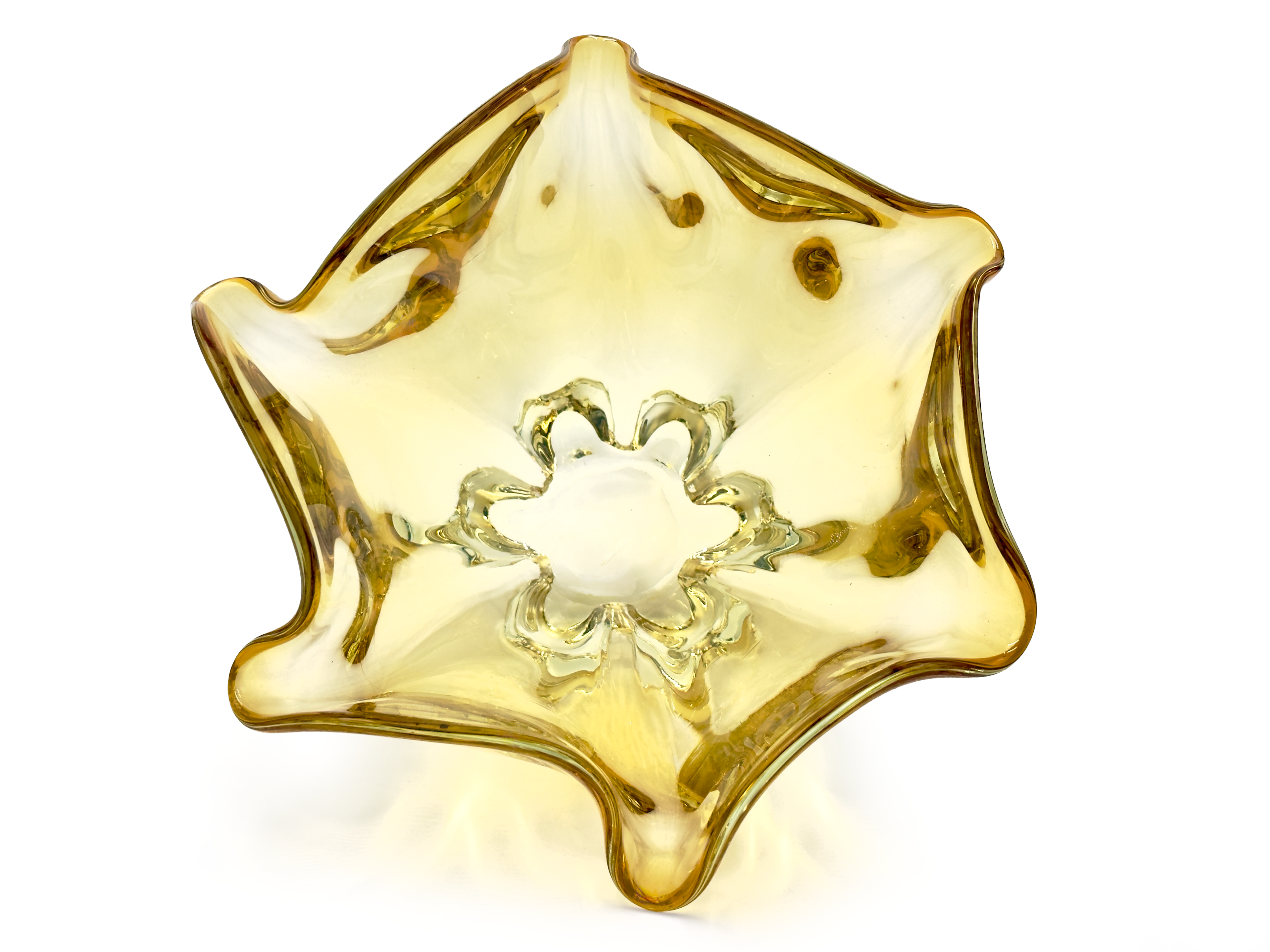 Whilst we know this piece was made in Japan simply by the style of glass, we're yet to identify the manufacturer - although it is possible that it was made by Iwatsu Glass Co, from their Hineri range.